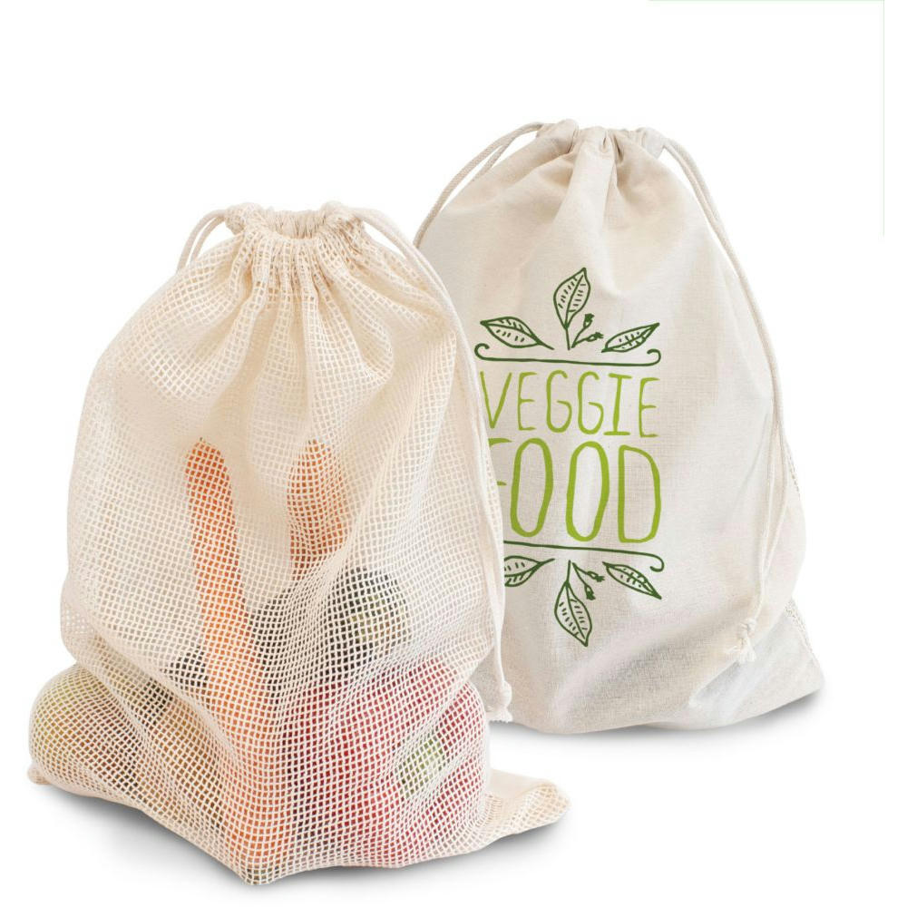 Zugbeutel aus 100 % OEKO-TEX® Baumwolle, 140 g/m². Er ist mit einem robustem, langlebigen Baumwoll-Netz, mit Tara-Innendruck (39 Gramm) versehen.