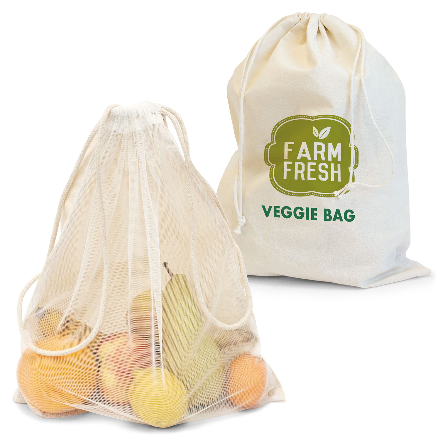 Der halbtransparente Zugbeutel ist aus 100% OEKO-Tex-Baumwolle, ausgestattet mit einem Frischenetz