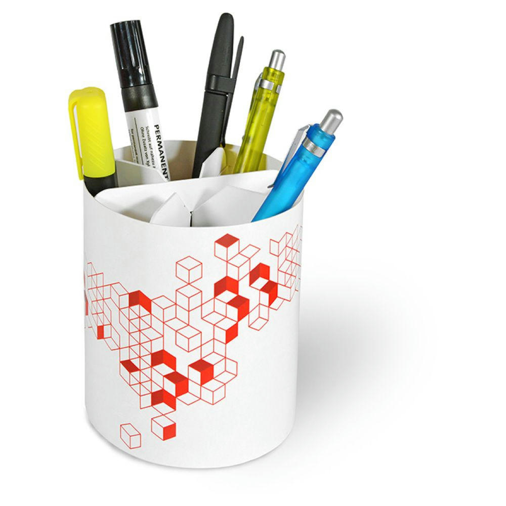 Die einzigartige Form des nachhaltigen Office Organizers aus Karton ist für alle im Büro und Homeoffice eine runde Sache. Mit ausreichend Platz für Stifte und anderem Büro-Zubehör.