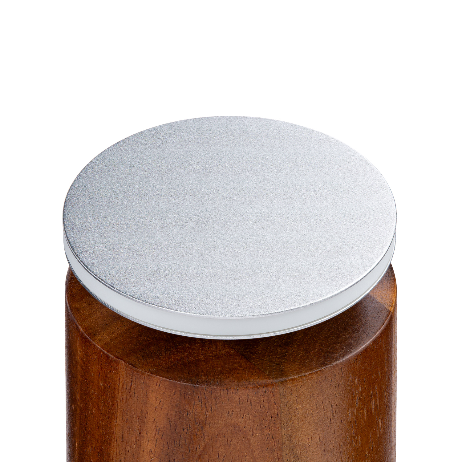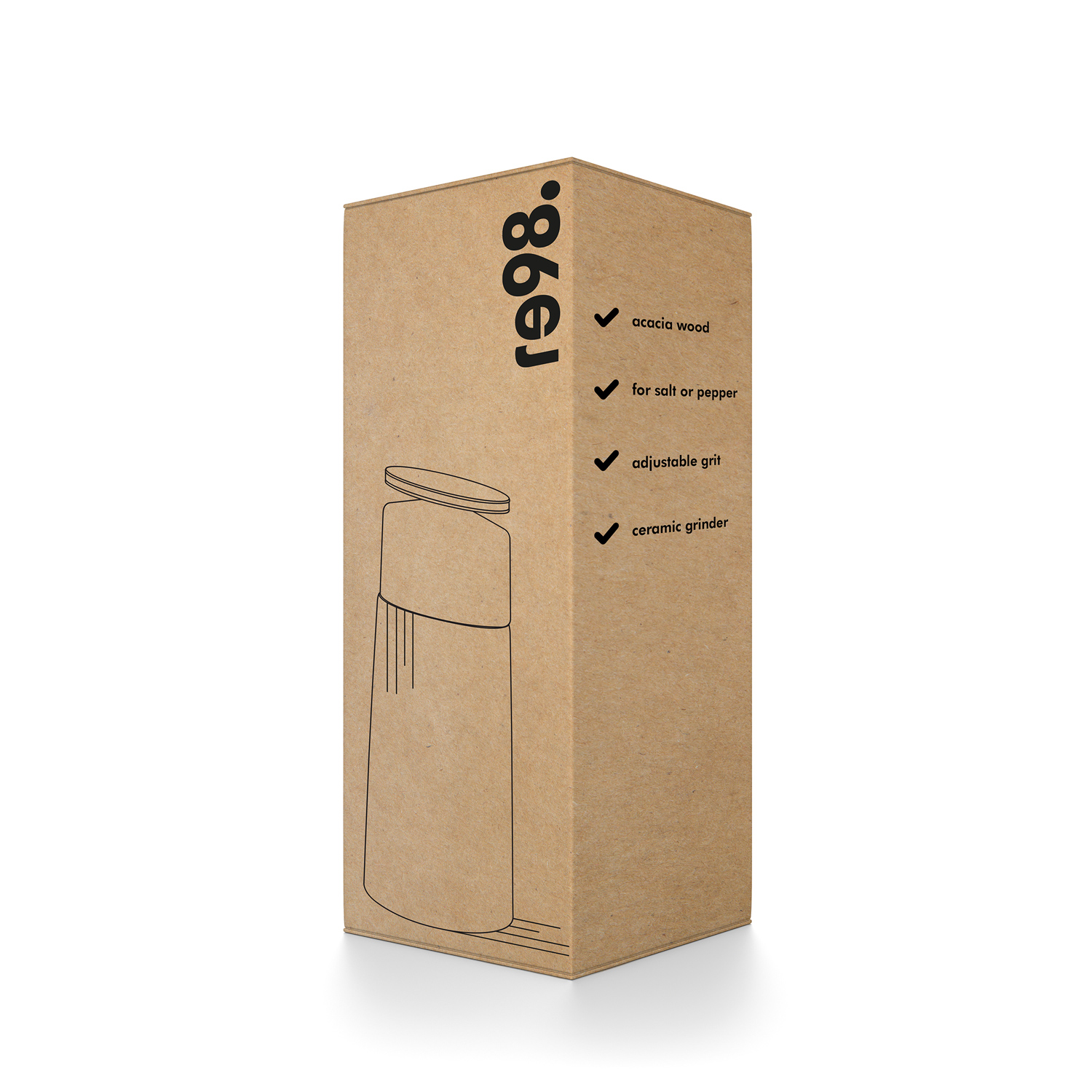 Die aus echtem Akazienholz und Aluminium gefertigte Salz- oder Pfeffermühle verfügt über ein hochwertiges Keramikmahlwerk. Dieses gewährleistet ein ausgezeichnetes Mahlergebnis. Die einstellbare Mühle ermöglicht eine Körnung von grob bis fein. Zur Orientierung ob die Mühle mit Salz oder Pfeffer gefüllt ist, liegt dem Produkt ein weißer und schwarzer Silikonring bei. Dieser kann an der Scheibe der Mühle angebracht werden.