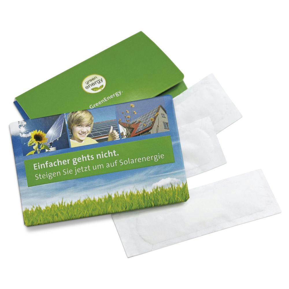 Pflastermäppchen, befüllt mit 4x nachhaltigen Pflaster-Strips 7x2cm. Made in Germany.