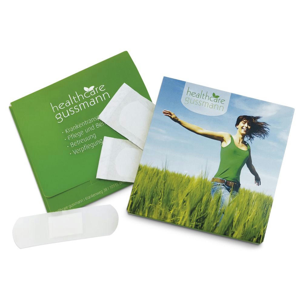 Pflastermäppchen, befüllt mit 10x nachhaltigen Pflaster-Strips 7x2cm. Made in Germany.