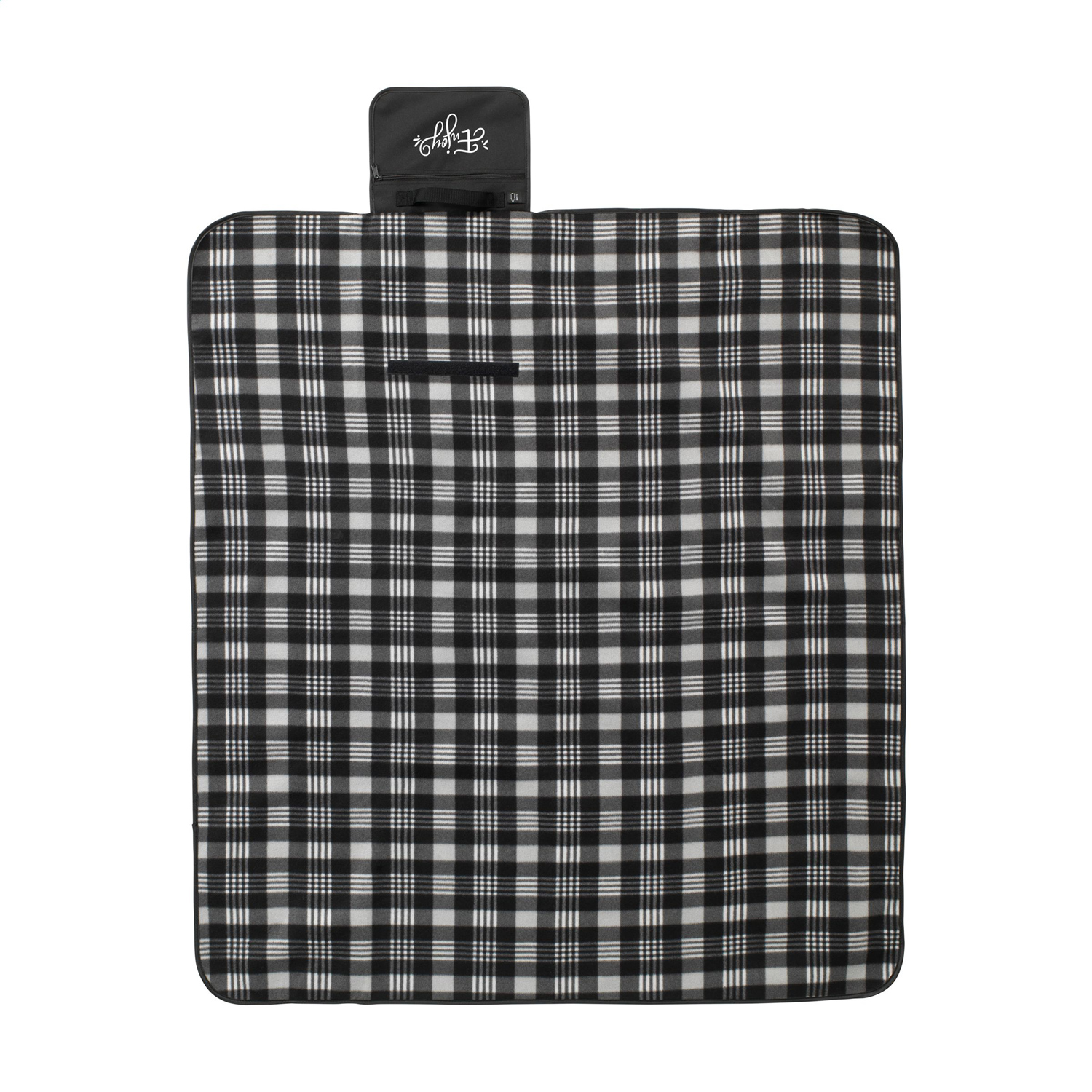 Picknickdecke mit Karomuster. Die Oberseite ist angenehm weich und besteht zu 100 % aus rPET (130 g/m²). Die Unterseite ist aus wasserabweisendem PEVA gefertigt und schützt vor Feuchtigkeit und Schmutz. Ausgestattet mit einer Reißverschlusstasche, einer Trageschlaufe und einem Klettband. Leicht zusammenzufalten und mitzunehmen. GRS-zertifiziert. Recyceltes Material insgesamt: 55%.