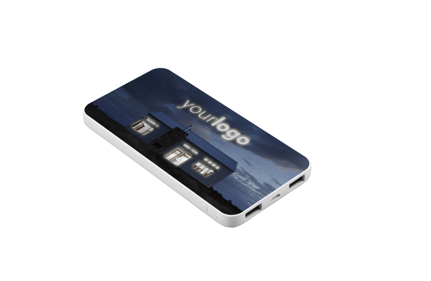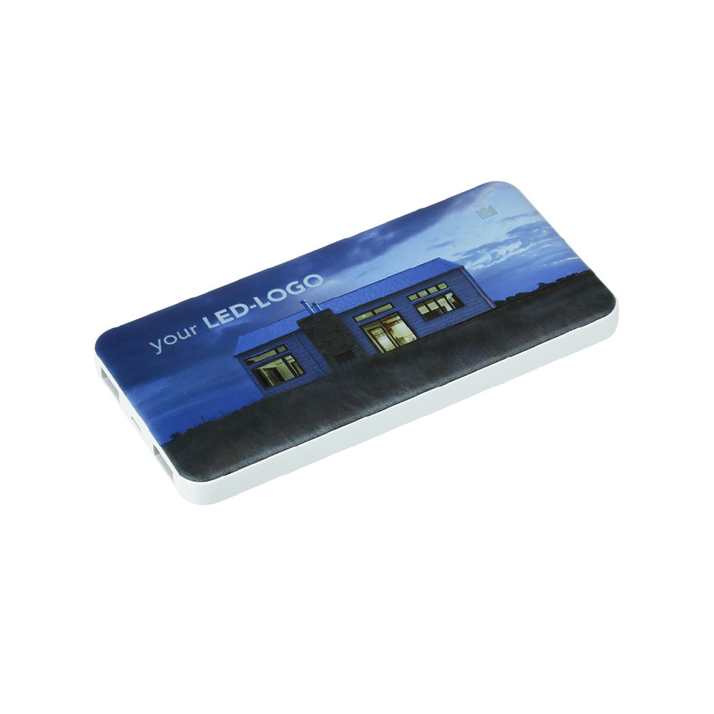 Powerbank mit 10.000 mAh und beleuchtetem fotorealistischen Digitaldruck. Mit doppeltem 2A USB Ausgang für das gleichzeitige Laden von zwei Geräten, LED-Anzeige zur Überwachung der Akku-Kapazität und Ladekabel.