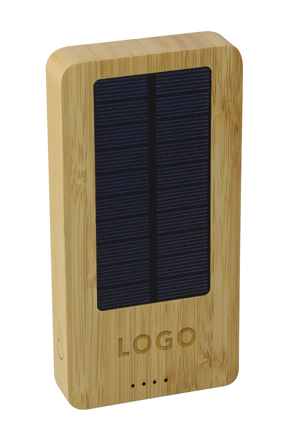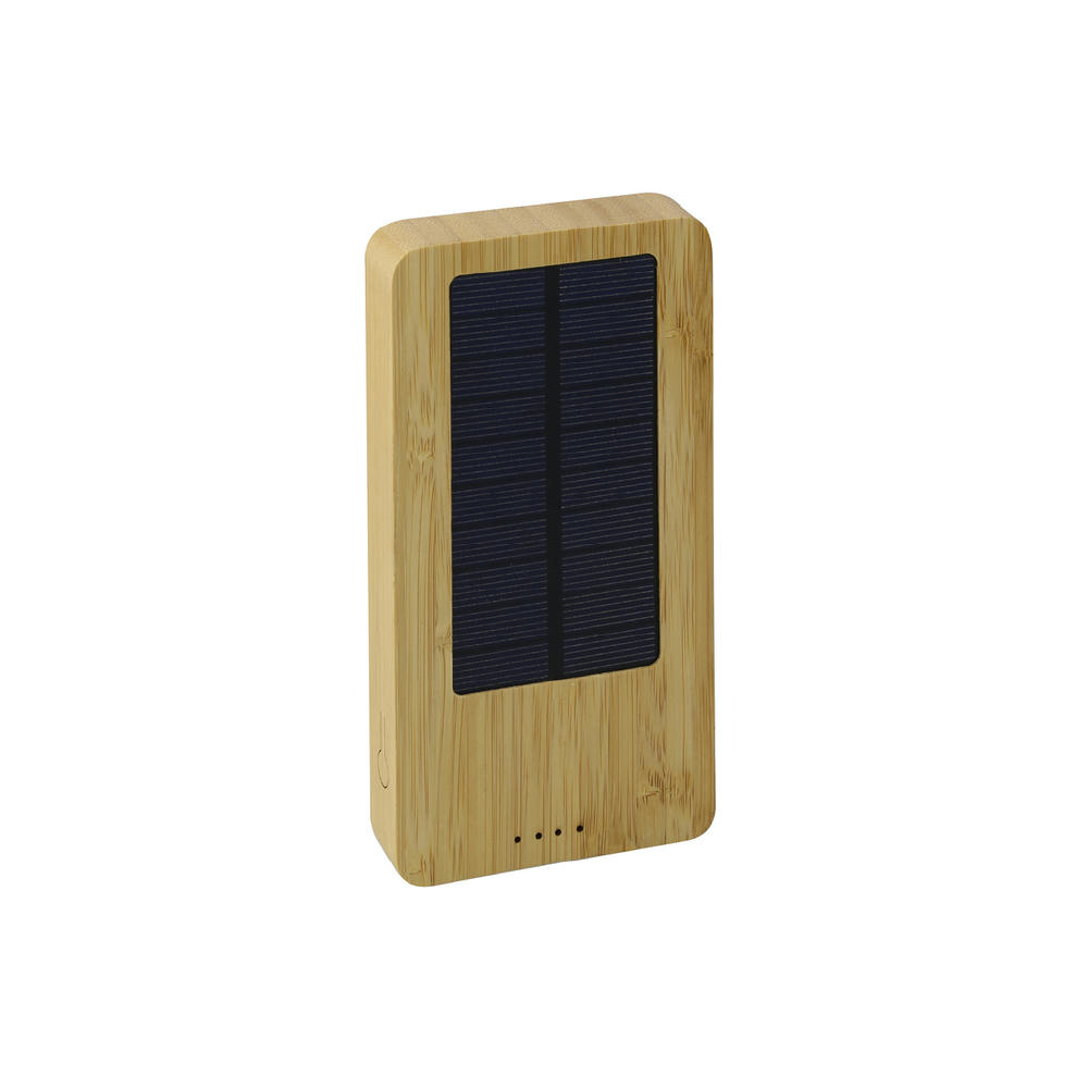 Powerbank mit 10.000 mAh und 5 Watt Wireless Charging Funktion. In Ressourcen schonendem Gehäuse aus schönem Bambusholz. Das rückseitige Solarpanel lädt die Powerbank ganz automatisches bei Tageslicht wieder auf. Mit doppeltem USB-A Ausgang zum gleichzeitigen Laden von zwei Geräten, On-Off Schalter, Energie-Level Anzeige und Typ-C Anschluss zum Laden mit Kabel.