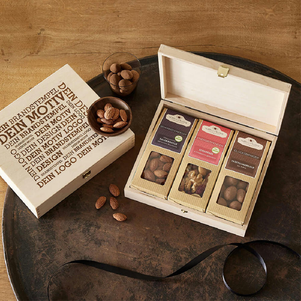 Premium Snacks in Birkenholzbox 3er