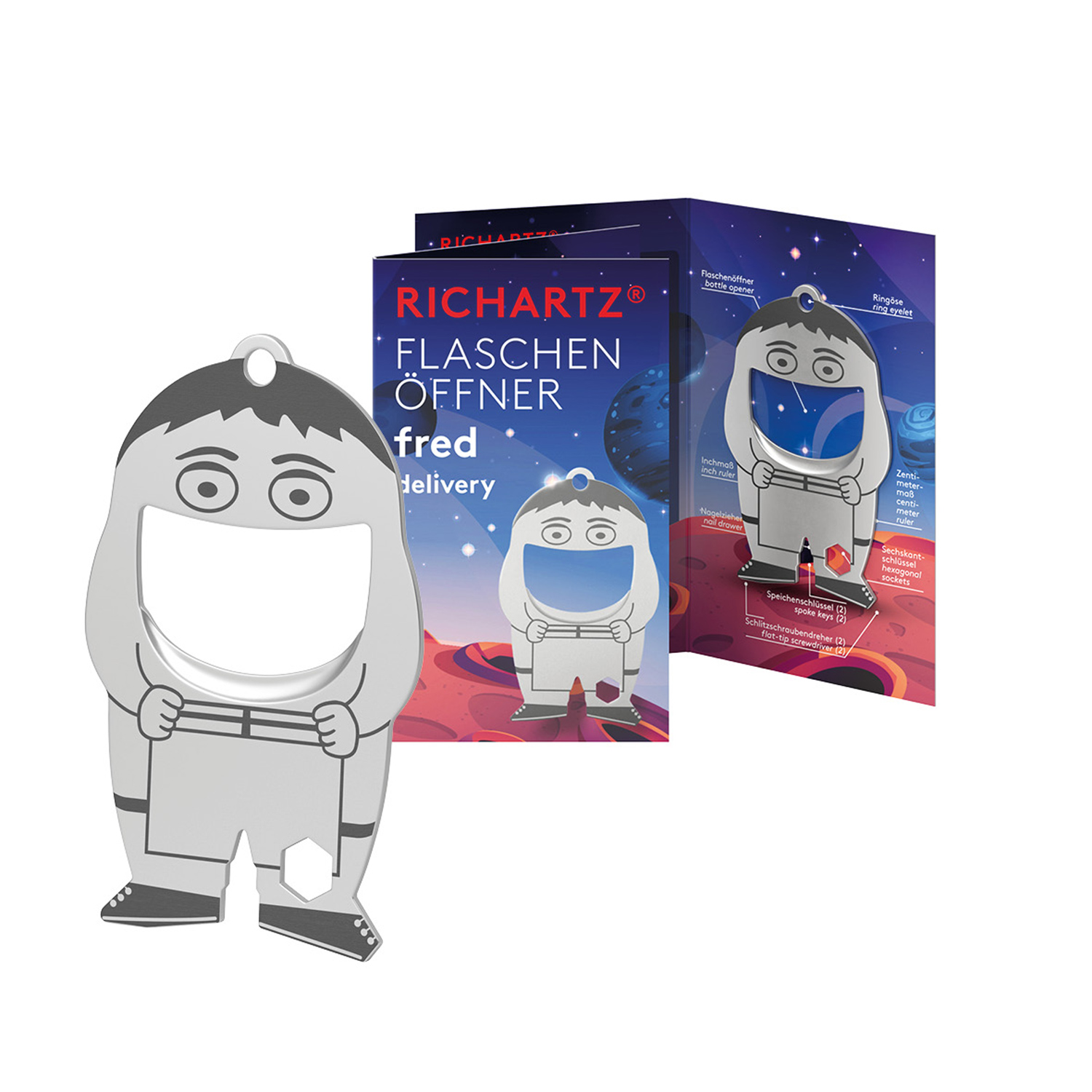 Der sympathische Flaschenöffner überzeugt durch seine schöne, kompakte Form und passt daher an jeden Schlüsselbund. Sein perfekt konstruierter Flaschen­öffner löst problemlos jeden Kronkorken und mit 9 weiteren nützlichen Funktionen wird er schnell zum unverzichtbaren Begleiter im Alltag. FLASCHENÖFFNER von RICHARTZ®: So praktisch und immer dabei!