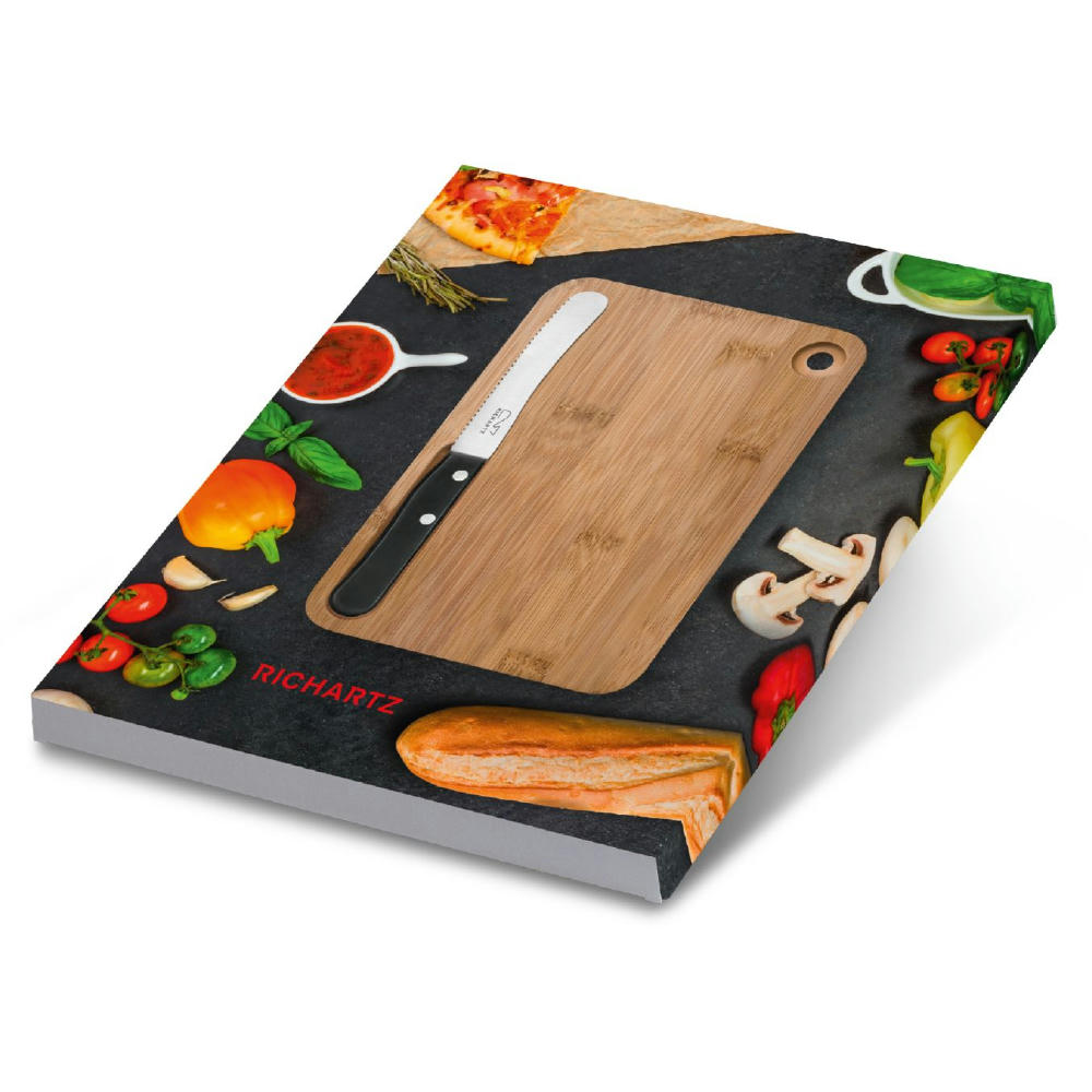 Das Set kombiniert das extra scharfe Frühstücksmesser mit Wellenschliff mit einem praktischen Schneidbrett aus Holz. Das Messer wird durch einen Magneten perfekt in der gefrästen Mulde des Holzbretts gehalten. Außergewöhnlich und praktisch. Ab 250 St. mit individuell gestaltbarem Schuber und Lasergravur / Holzgravur erhältlich.