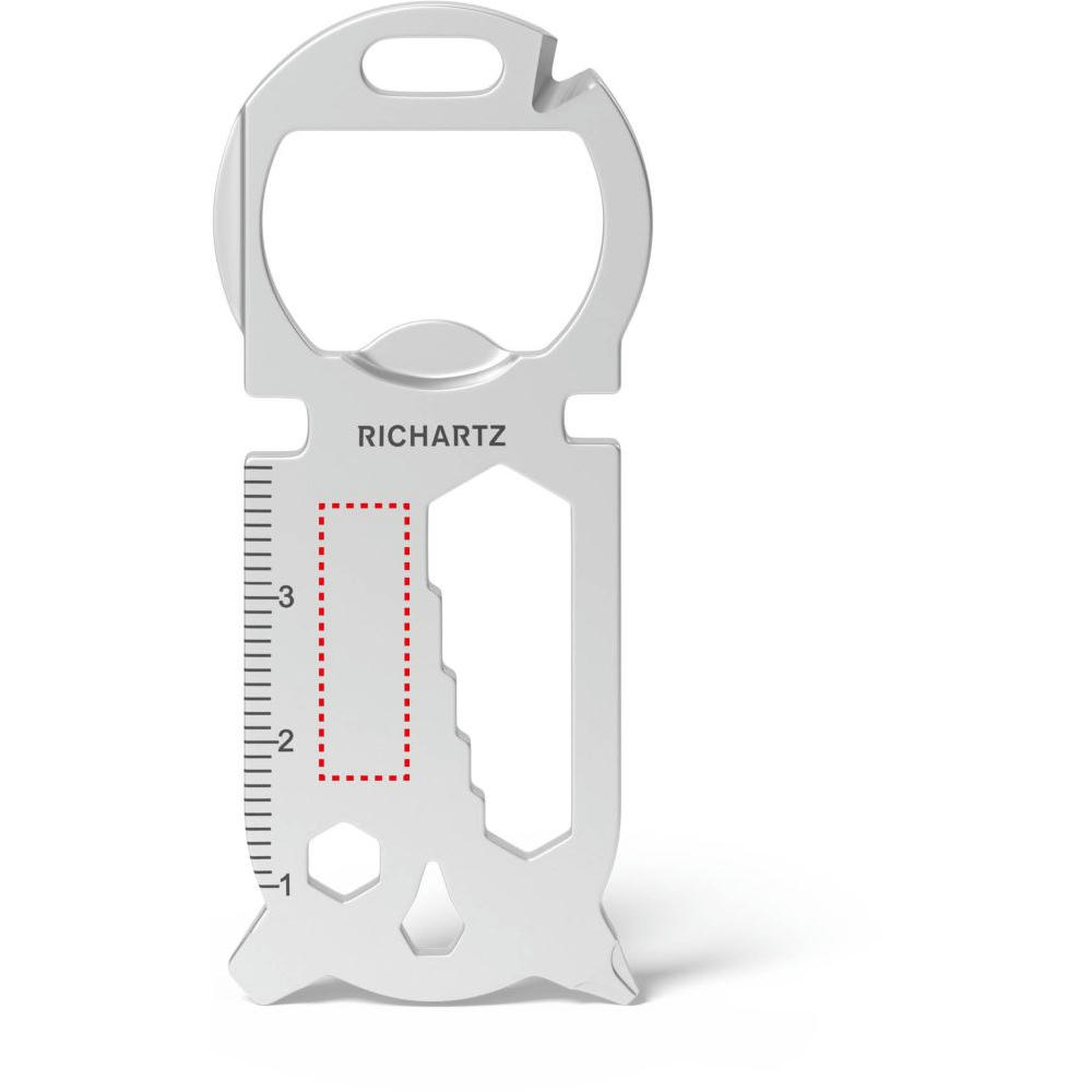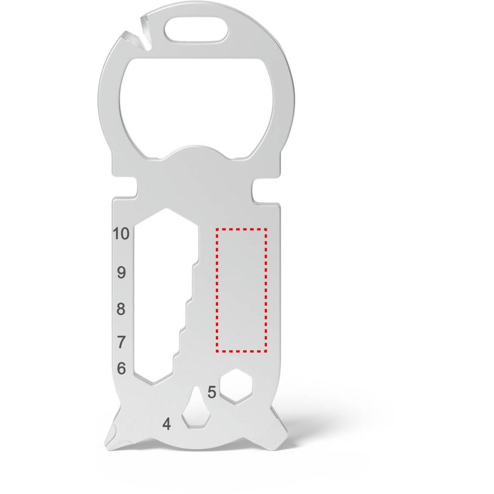 Das kompakte Multifunktionstool ist ein unentbehrlicher Begleiter und passt an jeden Schlüsselbund! 16 Funktionen: Kapselheber, kleiner und großer Schlitzschraubendreher, Kreuzschlitzschraubendreher, Kabelabzieher, zwei Fahrradspeichenschlüssel, sieben Sechskantschlüssel, Zentimetermaß, Nagelzieher. Ab 250 St. indiv. Verpackungsdruck und Lasergravur auf Produkt gegen Aufpreis möglich.