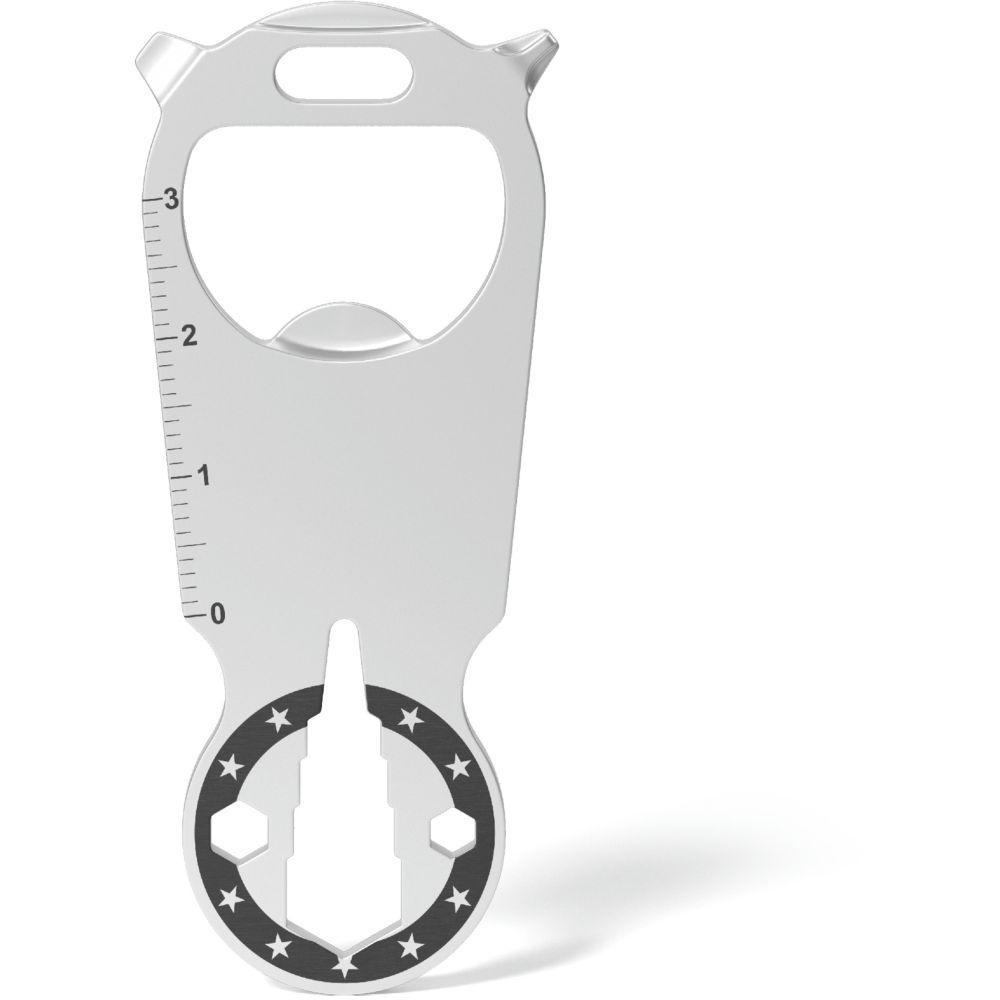 Das kompakte Multifunktionstool ist ein unentbehrlicher Begleiter und passt an jeden Schlüsselbund! 14 Funktionen: praktischer Einkaufswagenlöser, Kapselheber, zwei Schlitzschraubendreher, Kreuzschraubendreher, sechs Sechskantschlüssel, Zentimetermaß, Inchmaß, Nagelzieher.
