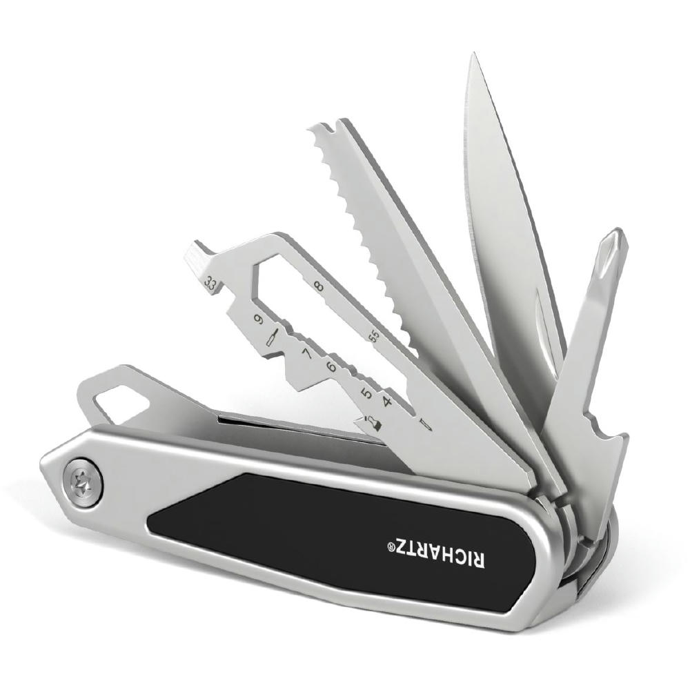 PROKNIFE 15 ist die kompakte moderne Neuinterpretation des klassischen Taschenmessers mit 15 Funktionen: Klinge, Säge, Kapselheber, Kreutzschlitzschraubendreher, Schlitzschraubendreher, Fahrradspeichenschlüssel, Sechskantschlüssel (5), Vielzahnschlüssel (2), Kabelabzieher, Nagelzieher.