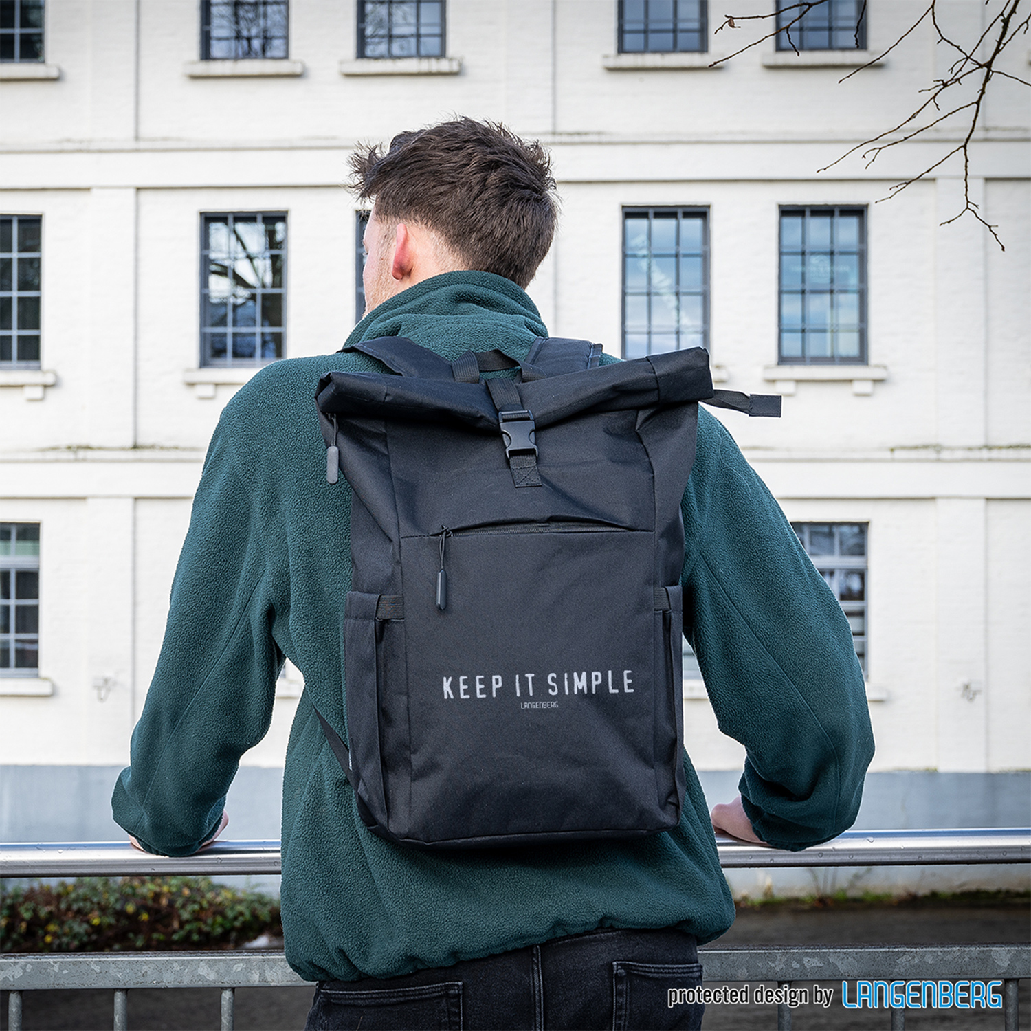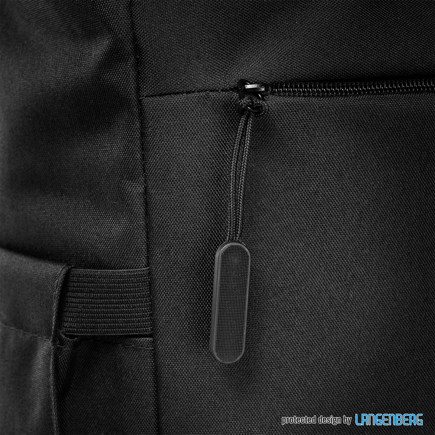 1-Wege-RV-Hauptfach mit Klickverschluss, 1-Wege-RV-Vortasche, gepolstertes Laptopfach für bis zu 16“, verstellbare, gepolsterte Schultergurte, gepolsterter Rücken, Flexible Seiten-Flaschenfächer, Air-Tag-Fach.