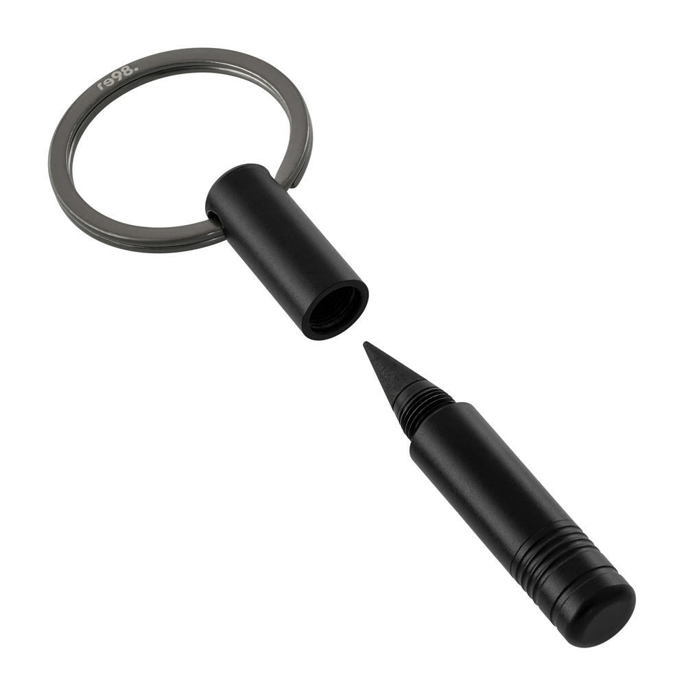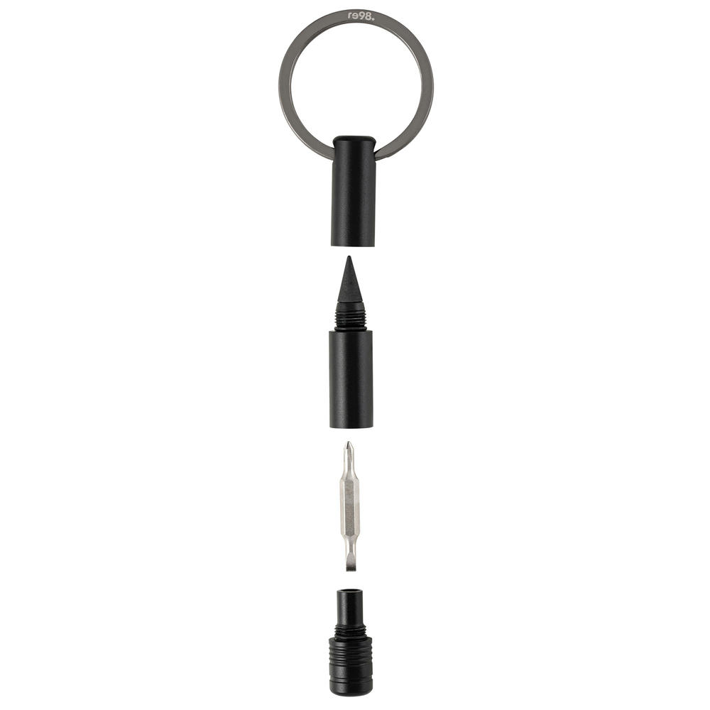Ausgestattet mit einem magnetischen Bit und einer radierbaren Endlos-Schreibspitze. Der Bit ist aus besonders hartem Stahl mit einer Rockwell Härte von 55 bis 60 HRC. Sowohl ein Schlitz- als auch ein Kreuzschlitzaufsatz stehen zur Verfügung. Hergestellt aus recyceltem Aluminium, liegt der schwarz eloxierte Schlüsselanhänger leicht in der Hand. Veredelbar mit Lasergravur. Inkl. Geschenkverpackung.