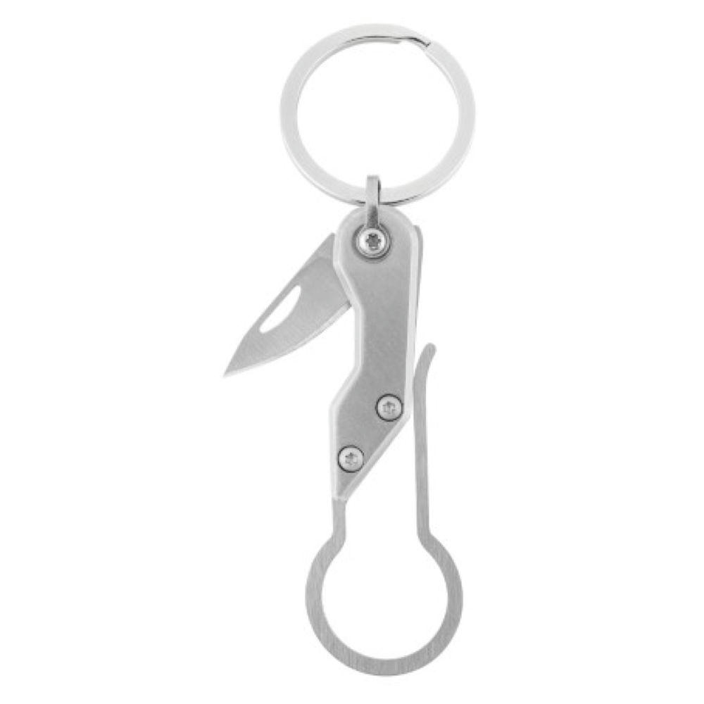Die Everyday Lösung - Einkaufen (Einkaufswagenlöser), Schlüsselmanagement (Aufhängespange für zuhause & die Handtasche) & Minischäl- und Universalmesser - das alles am Schlüsselbund! Exclusiver & vielseitiger Werbeträger aus Stahl.