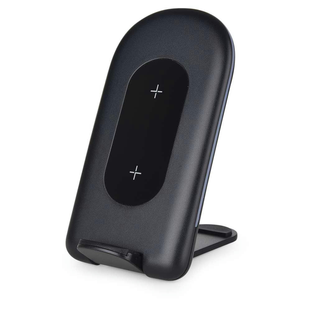 Faltbarer Handy Ständer. Kabellos im Hoch- oder Querformat laden. Bis zu 15 Watt Fastcharge mit 2 Ladezonen für kleine und große Smartphones. Anschlusskabel USB auf USB-C. Verpackt im Displaykarton.