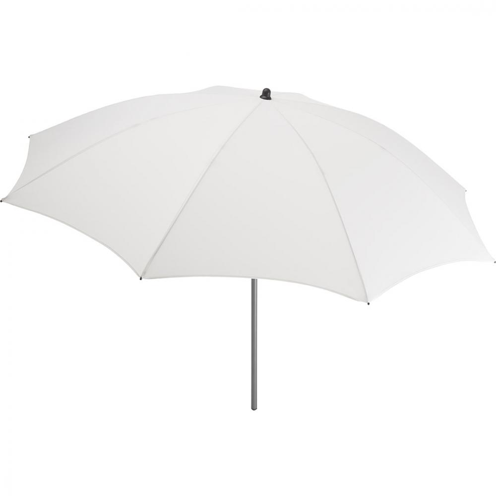 Moderner Sonnenschirm mit Gestell in Titan-Finish und Knickvorrichtung. Einfache Handhabung durch Sicherheitsschieber, sehr stabile Fiberglasschienen, zweiteiliger und stufenlos höhenverstellbarer Stock mit Knickvorrichtung zur Neigung des Schirms, Stock in edlem Titan-Finish, Unterstock mit ca. 119 cm Länge und Drehfeststeller zur sicheren Fixierung, komfortables Tragefutteral, hochqualitativer Bezug mit einer Grammatur von ca. 200 g/m² und Lichtschutzfaktor UPF 50+, exklusive Füllständer (Art. 8920 oder Art. 8905) / Erdspieß (Art. 8939)