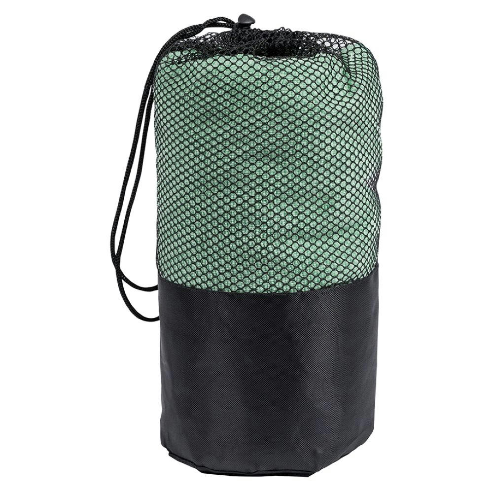 Großes Sporthandtuch aus 85% Polyester und 15% Polyamid (Mikrofaser-Frottee 280 g/m²)stark absorbierend, in einem schwarzen Netzbeutel mit Infobanderole, die auf Wunsch selbst gestaltet werden kann.