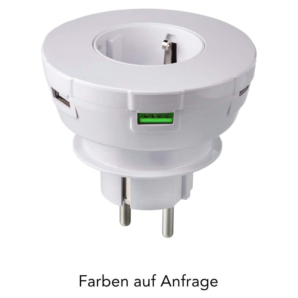 Mit 3 USB und 1 Type-C Power Delivery Ausgang und 220V Steckdose. Output Info: Type-C = 5V, 3A Max. 9 V, 2.22A, 12 V = 1,67 A = 20 Watt max. USB 2 = 5V 3A, 9 V 2 A, 12V 1,5A, 18 Watt max. USB 3/4 = 5V 2A, 10 Watt max. Die Ausgangsleitung gesamt wird per Smartchip geteilt entsprechend dem Leistungsbezug der angeschlossenen Geräte. TÜV/ GS Zertifiziert.