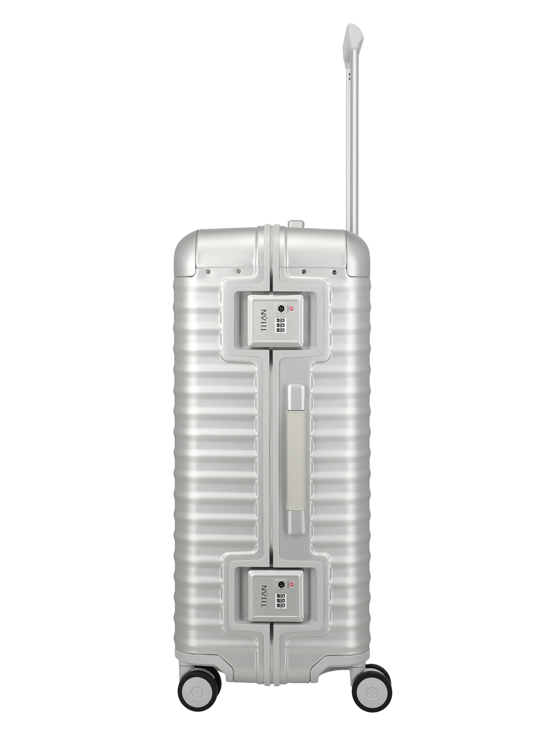 Einzigartiger TITAN Smart Frame im Aluminium-Gehäuse: kein Verbiegen bei hoher Drucklast . Mono-Lock für noch leichteres Handling beim Öffnen und Schließen des Koffers (bei S, bei M und L zwei Schlösser) à zwei extra große TSA-Schlösser für müheloses Handling beim Öffnen und Schließen des Koffers.Stufenlos verstellbarer Teleskopgriff, Griffe aus Echtleder, Innenfutter aus recyceltem Polyester mit hochwertiger Jacquard-Webung. Intelligente Innenaufteilung mit Mesh-Fächern und herausnehmbarer Packplatte, Packgurte in praktischer Y-Shape. Premium-Kugellager-Rollen. Produktspezifische Seriennummer.