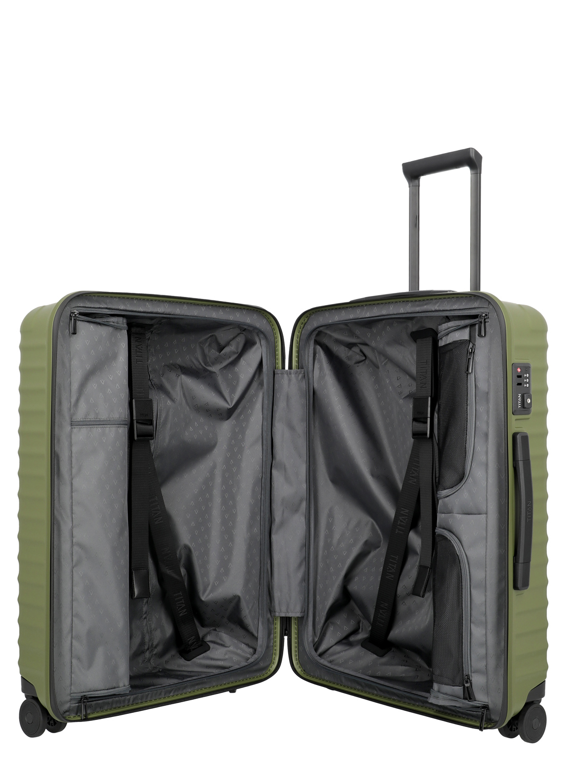 Hochwertiges Design mit höchster Qualität.Speziell entwickelte, besonders matte Oberflächenstruktur für maximale Kratzresistenz. 100 % Polycarbonat. Zweifach verstärkte Schutzecken, für noch mehr Stabilität. Leichtgängiger, wasserabweisender Reißverschluss. Innenfutter aus recyceltem Polyester mit hochwertiger Jacquard-Webung. Intelligente Innenaufteilung mit bis zu drei zusätzlichen Fächern. Herausnehmbare Packgurte in praktischer Y-Shape. Produktspezifische Seriennummer. Ergonomisch geformte Handgriffe. Große, überdurchschnittlich leise Doppelrollen. Made in Germany.