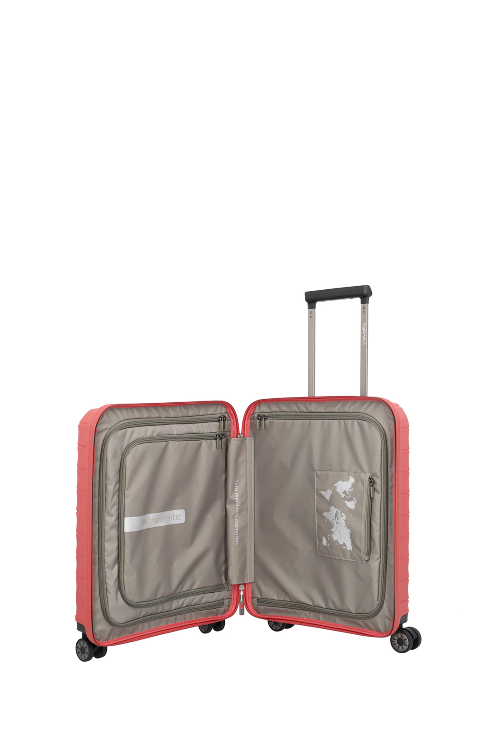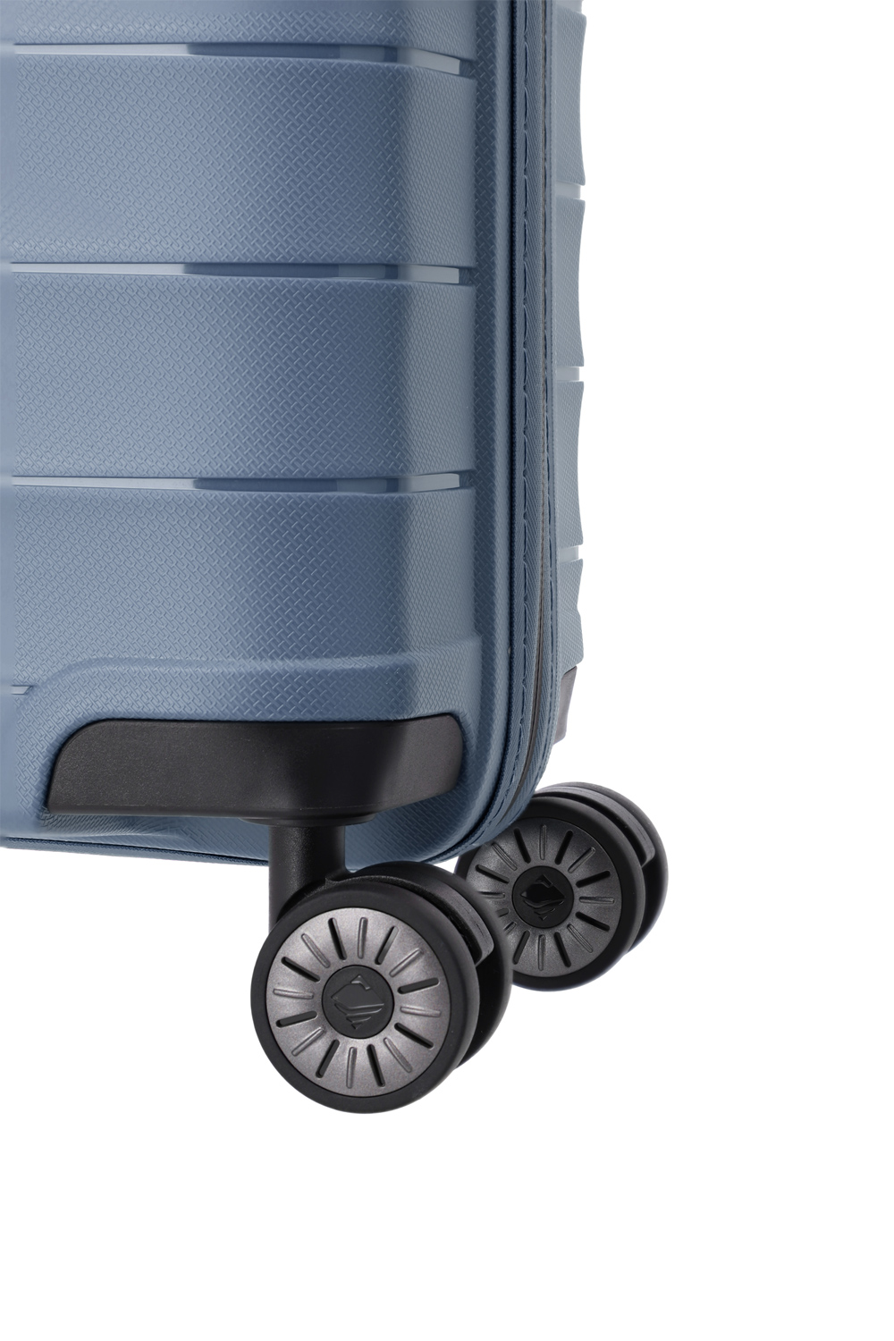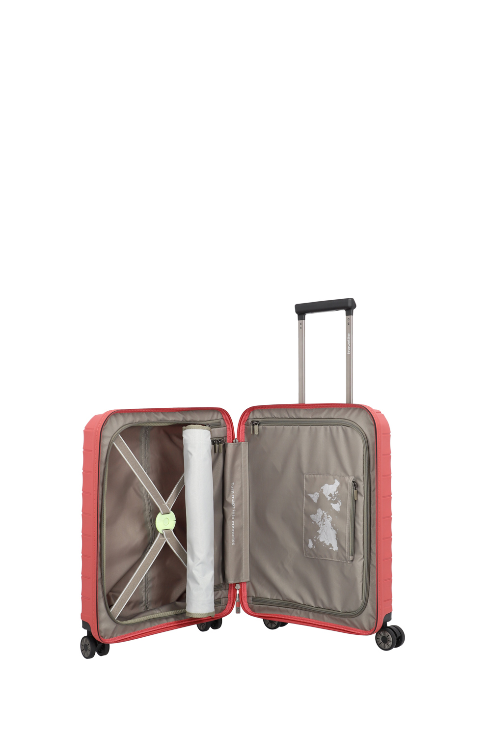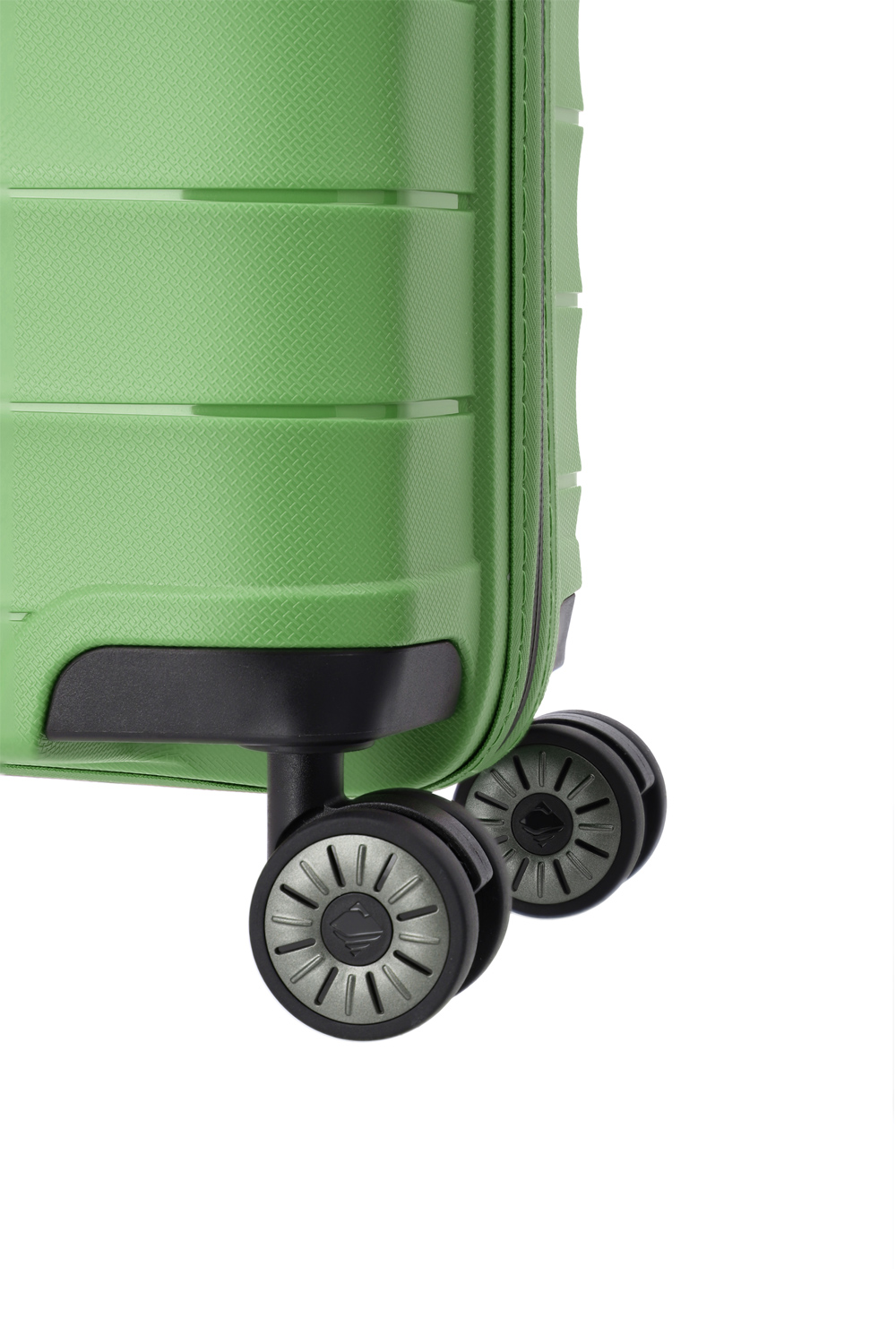 Die Hartschalentrolleys der Serie Mooby sind aus recyceltem Polypropylen (mit Ocean Bound Plastic), das Innenfutter ist aus recyceltem Polyester. Die Oberfläche ist kratzresistent. Alle Trolleys der Mooby-Serie haben ein versenktes TSA Kombinationsschloss und 4 gummierte Doppelrollen.