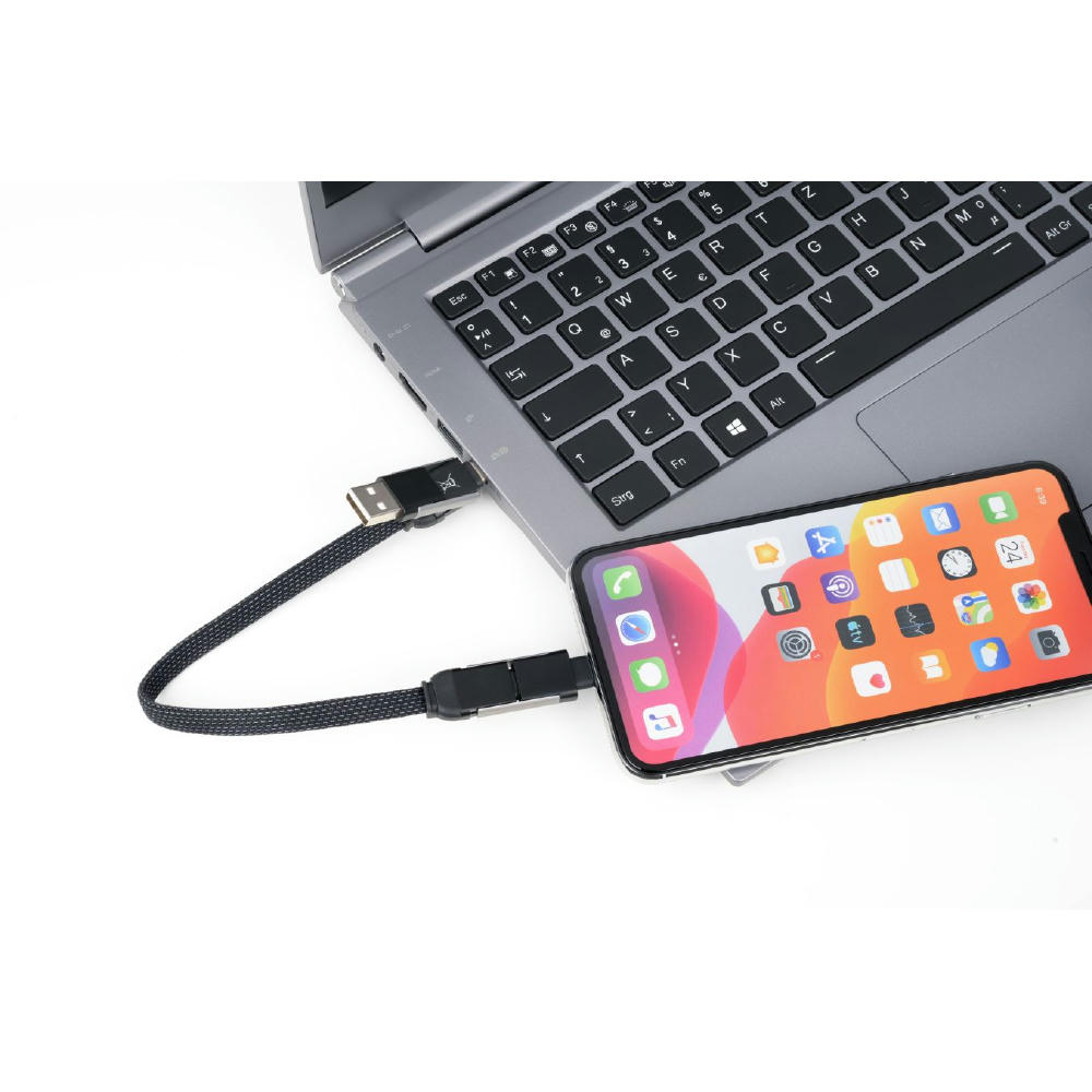 Schnellladekabel mit Flaschenöffner für unterwegs, USB/USB-C auf Lightning oder USB-C, mit Datenübertragungsfunktion, Kabel textilummantelt.