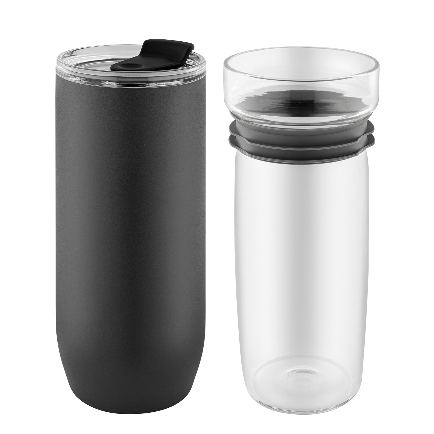 Einzigartige Verbindung von Edelstahl & Borosilikat, perfekte Isolation (Doppelwandig/Vaccuum) und innen mit Borosilikatedelglas (absoult hitzeresistent, geschmacksneutral, leicht zu reinigen ). Beide Becher (Stahl & Glas) leicht trennbar und Einzeln zu verwenden.
