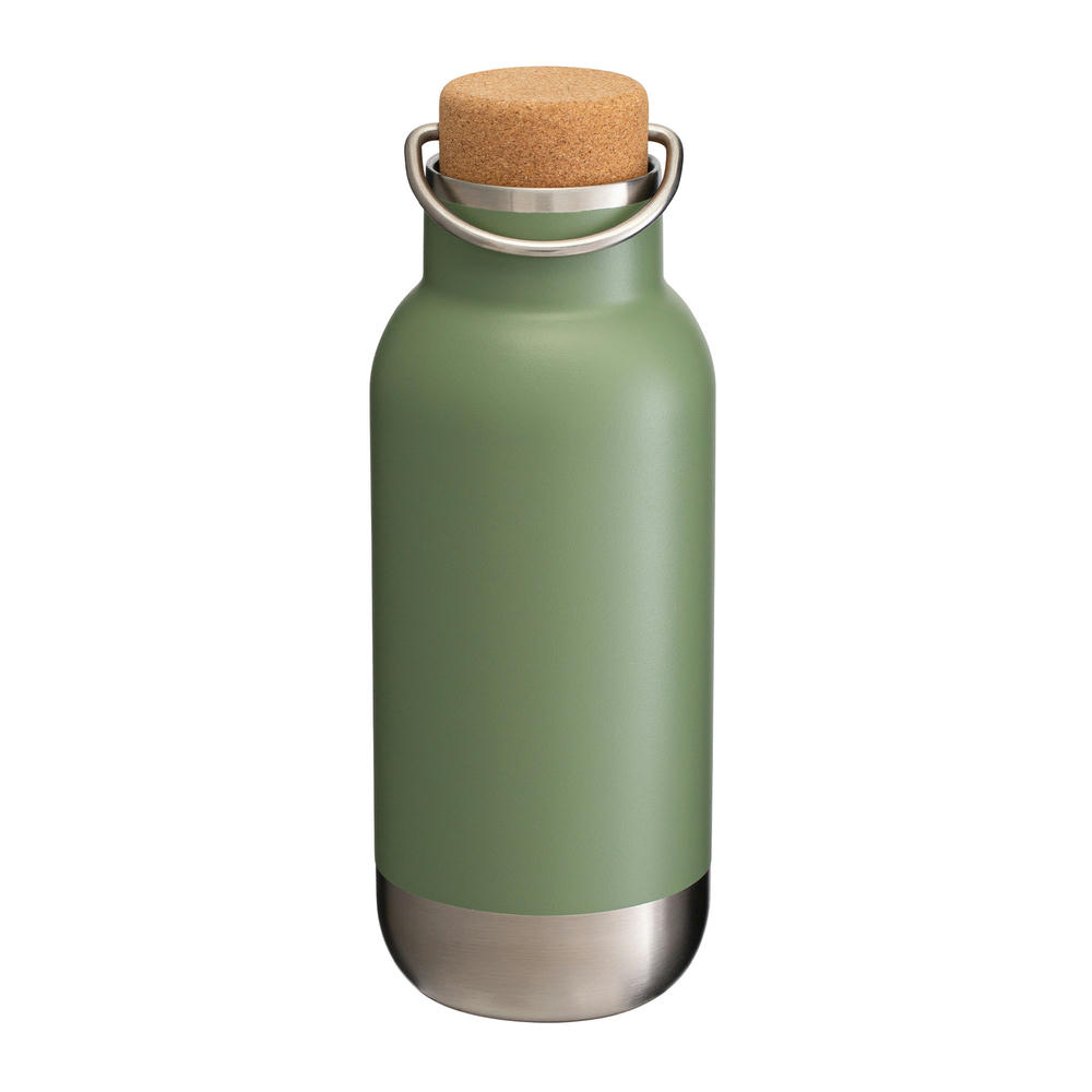 Die feine Pulverbeschichtung verleiht der Flasche eine äußerst angenehme Haptik. Ein Korkdeckel mit einem praktischen Henkel sorgt für einen harmonischen Look. Dank des Henkels kann die Trinkflasche bequem getragen oder an die Tasche angebracht werden – ideal für unterwegs. Durch die Silikondichtung und den Drehverschluss wird die Thermoflasche sicher verschlossen und damit auslaufgeschützt. So ist die Trinkflasche geeignet für kohlensäurehaltige Getränke. Der Artikel kann bedenkenlos in der Spülmaschine gereinigt werden. Beachten Sie: Der Korkdeckel ist nicht spülmaschinenfest!