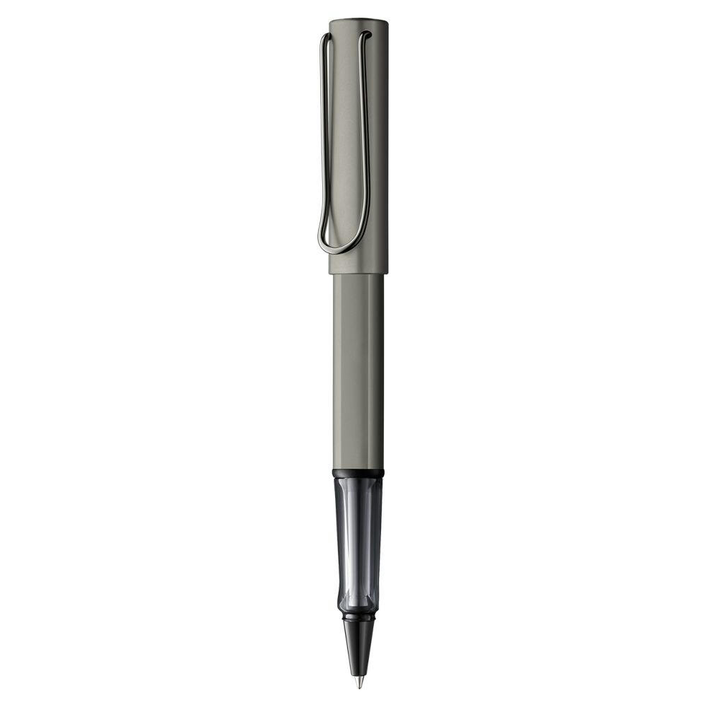 Tintenroller aus Aluminium, ergonomisches Griffstück aus transparentem Kunststoff, mit selbstfederndem Metallclip