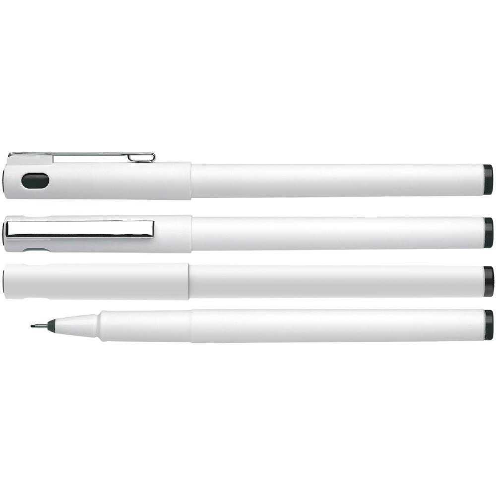 Fineliner aus opakem Kunststoff mit fein mattierter Oberfläche. *Gehäuse zu 82 % aus Recycling-Kunststoff. Cap off-Tinte, kann 2–3 Tage offen liegen. Metallclip und metallgefasste Faserspitze 0,4 mm. Produkt mit finanziellem Klimabeitrag: Kompensation in Höhe der unvermeidbaren Emissionen in ein zertifiziertes Klimaschutzprojekt. Gehäuse: weiß/schwarz. Schreibfarbe: schwarz.