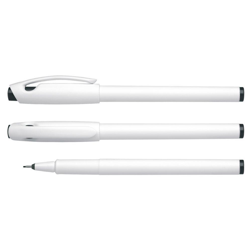 Fineliner aus opakem Kunststoff mit fein mattierter Oberfläche. *Gehäuse zu 82 % aus Recycling-Kunststoff. Cap off-Tinte, kann 2–3 Tage offen liegen. Metallgefasste Faserspitze 0,4 mm. Produkt mit finanziellem Klimabeitrag: Kompensation in Höhe der unvermeidbaren Emissionen in ein zertifiziertes Klimaschutzprojekt. Gehäuse: weiß/blau. Schreibfarbe: blau.