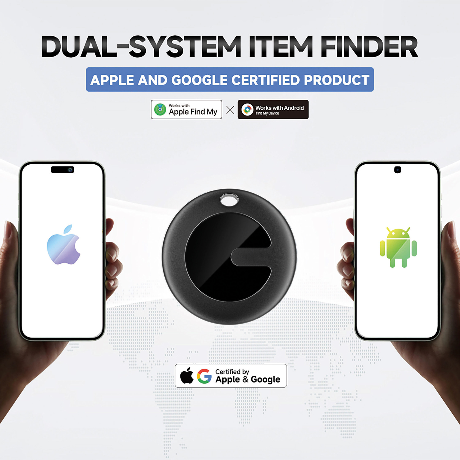Tracker für Gegenstände, die leicht verloren gehen können. Sie können ihn an Ihrem Schlüsselbund, Ihrer Tasche oder Ihrem Koffer anbringen. Geeignet für iPhone und Android Smartphone. Wasserdicht nach IP65. Inkl. CR2032-Batterie, Schlüsselring und kurzem Lanyard. Im Einzelkarton.