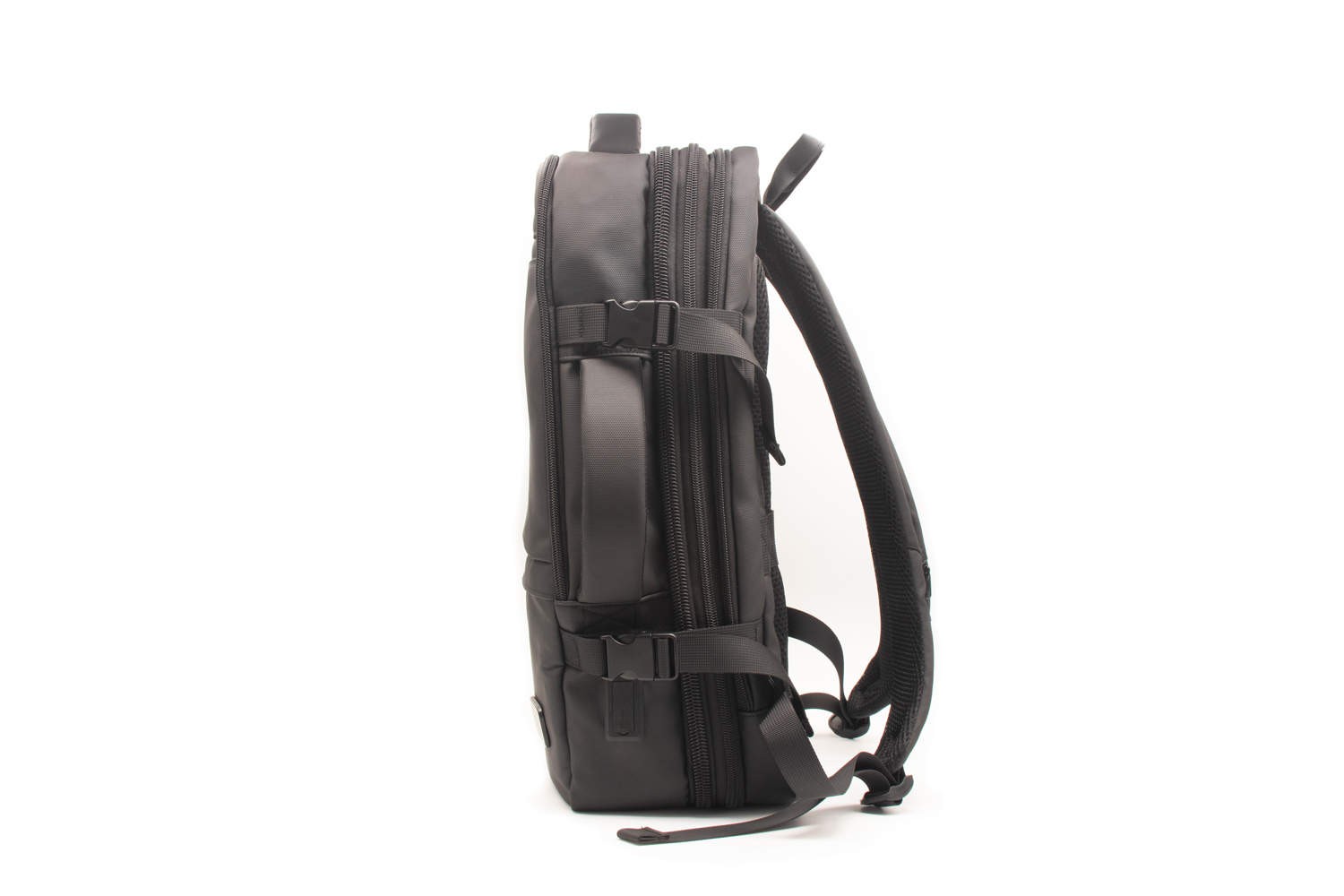 Mit seinem integrierten, wasserdichten Vakuumsystem reduziert er das Volumen Ihrer Kleidung und ermöglicht es Ihnen, den Platz zu optimieren und gleichzeitig Ordnung zu halten. Seine kompakte Größe entspricht den Handgepäckbestimmungen der meisten Fluggesellschaften und macht ihn zum idealen Begleiter auf Reisen. Der Rucksack besteht aus recyceltem PU- und PET-Material und verfügt über ein gepolstertes Laptopfach, zwei Außentaschen, eine gesicherte Rückentasche und eine Vliestasche (55 × 59 cm). Für zusätzlichen Komfort ist der Rucksack mit einem internen USB-A/Typ-C Anschluss für die Verbindung mit einer Powerbank und externen USB-A/Typ-C Anschlüssen für den Anschluss eines Ladekabels ausgestattet.