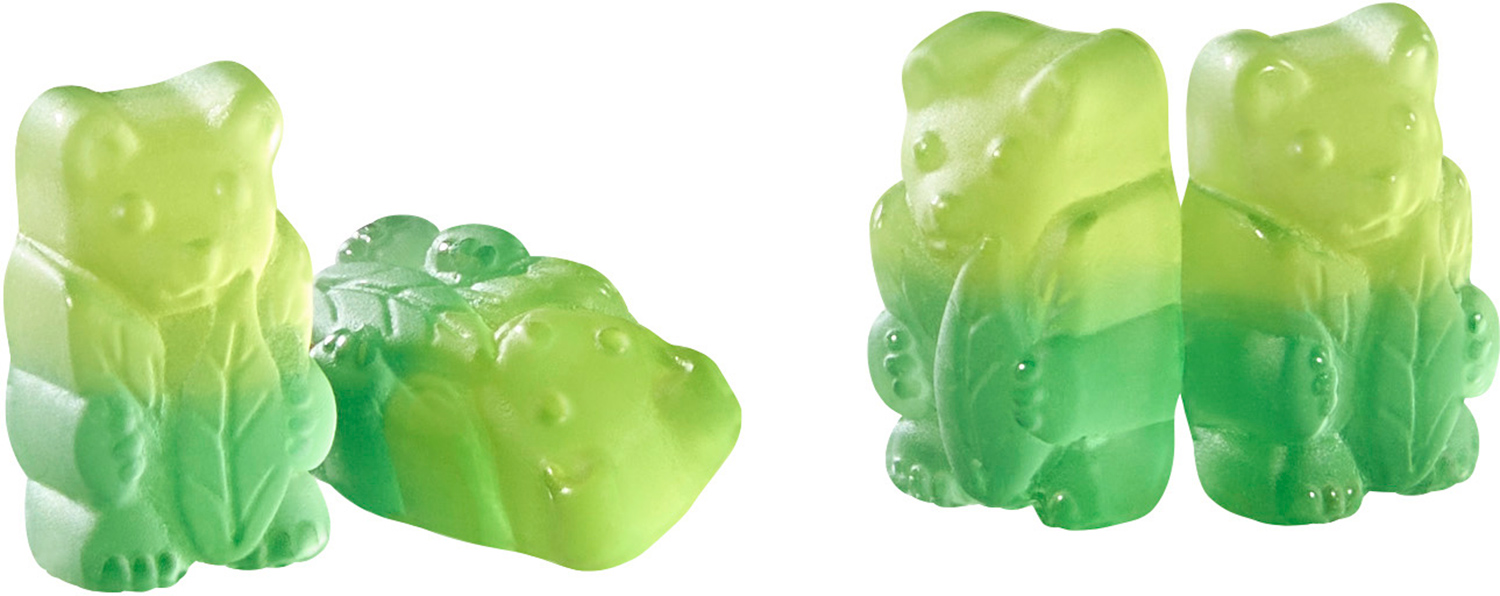 2-farbiges Fruchtgummi ohne Gelatine, mit fruchtig-spritzigem Limetten-/Zitronen- und Basilikum-Aroma, in weißem Werbetütchen verpackt. Haltbarkeit 12 Monate. Alternativ auch als transparentes und kompostierbares Tütchen erhältlich. Inkl. 1-5c Druck.