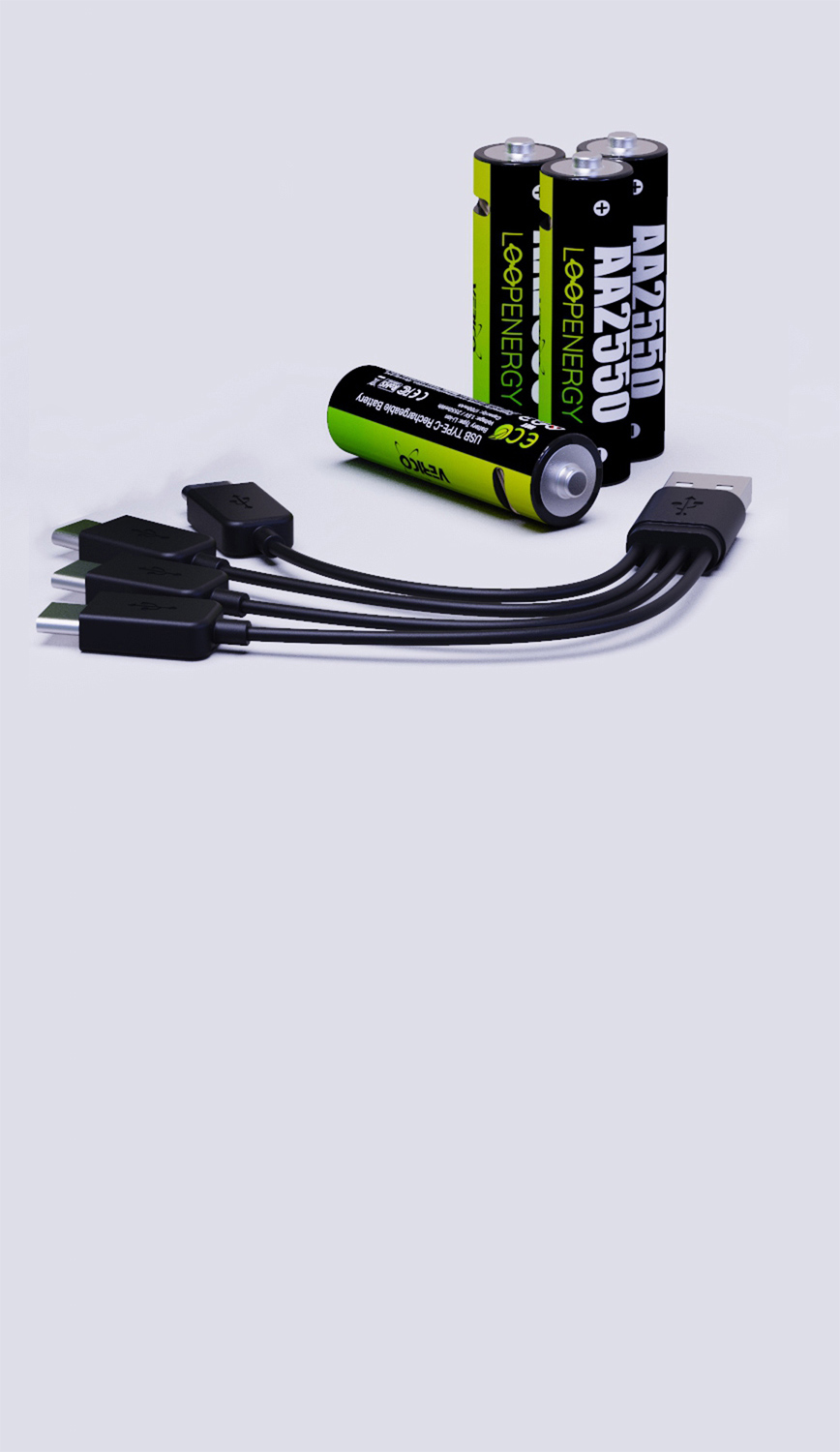 Eine Batterie, die per USB-C Kabel schnell und unkompliziert aufgeladen werden kann. Max. Spannung: 1,5V / 2550mWh. Kapazität: 1700mAh inkl. USB-Ladekabel und praktischer Aufbewahrungsbox. Individuell gestaltbar.