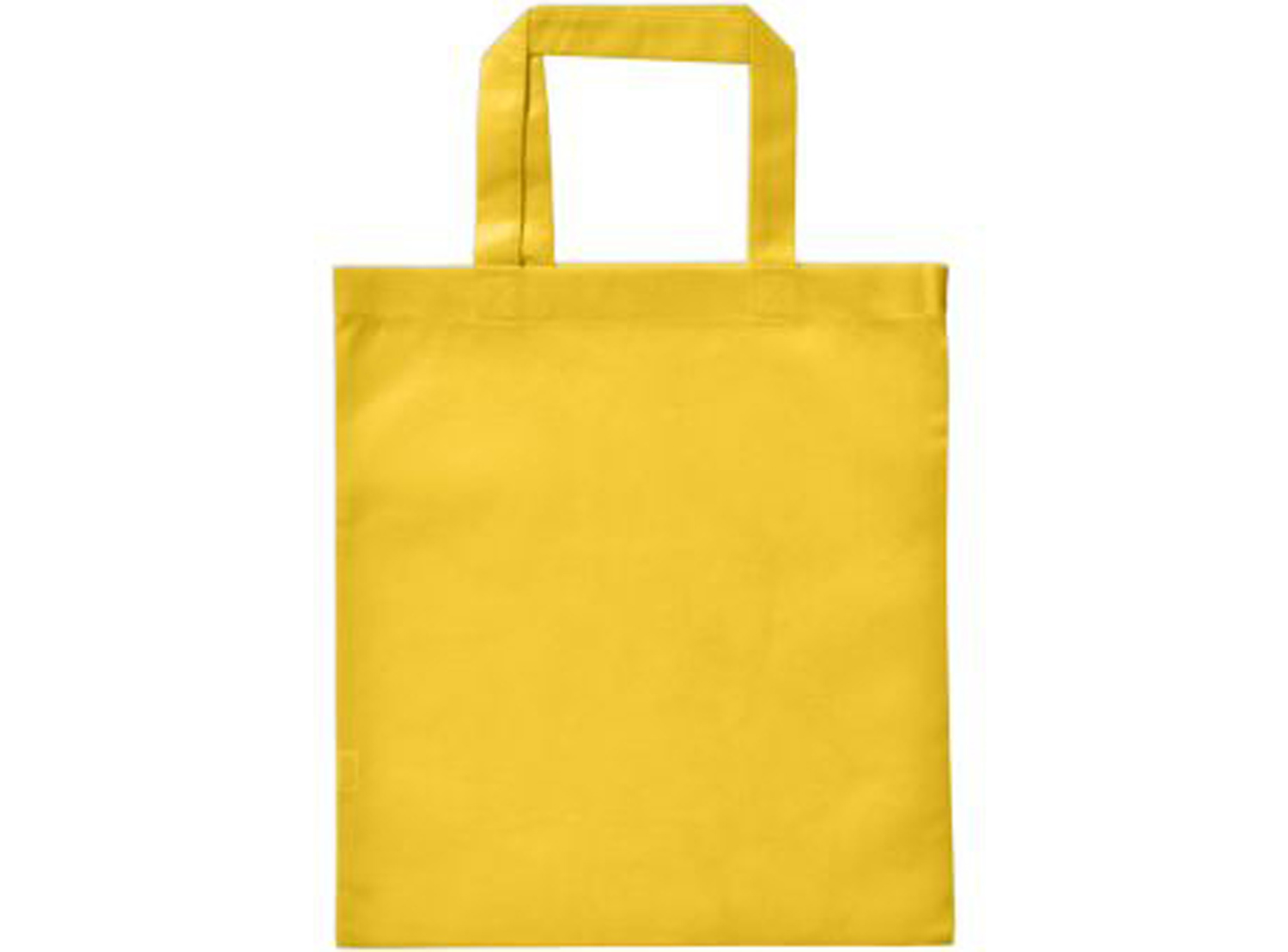 Vliestasche "PP Non Woven" gelb, 2 kurze Henkel, Topqualität: ca. 90 gr. pro qm, Produktdetails: Artikelgröße: 38 x 42 cm Henkellänge: ca. 45 x 3 cm Material: 100% Polypropylen Qualität: ca. 90 gr. pro qm