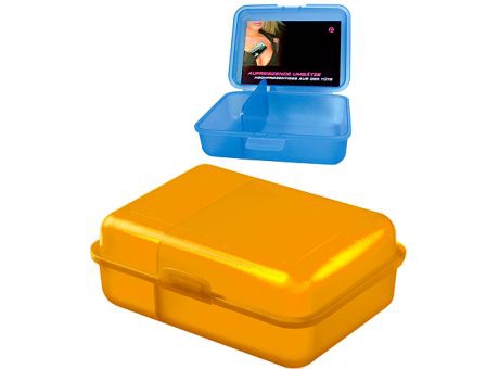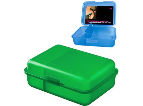 Take a Break! Schicke Pausenbox mit Klickverschluss und praktischer Trennwand. In vielen Farben erhältlich und bestens für die Veredelung per IMould-Verfahren geeignet.