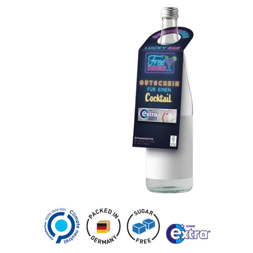 Werbeanhänger komplett aus Karton, ohne Inhalt, individuell bedruckt. Ohne Produkt