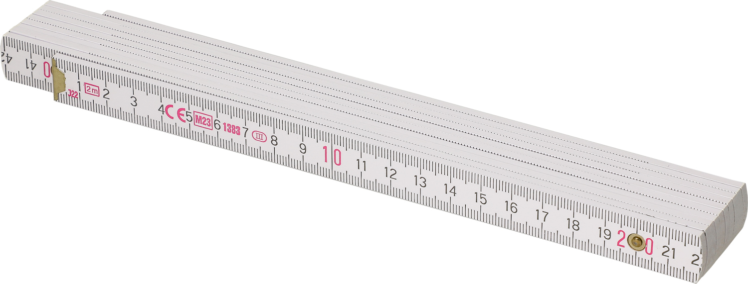 Hochwertiger weißer Glieder-Maßstab aus Buchenholz. Hohe Qualität durch die metallenen Gelenke und die sichtbaren Nieten. Länge: 2 m.