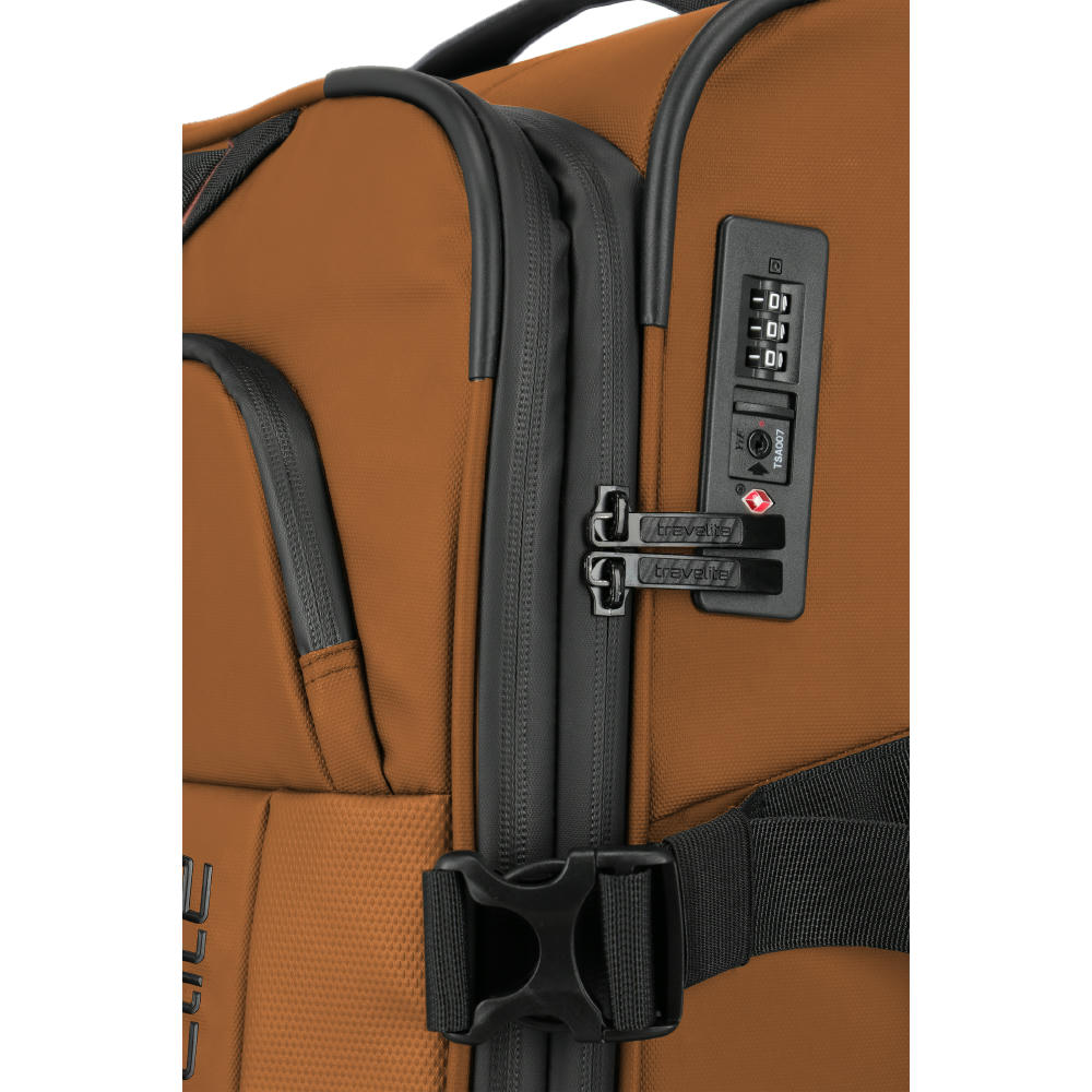 Details und Funktionen: - Aus wasserabweisendem Planenmaterial - Integriertes TSA Kombinationsschloss - Hemdenfach - Packgurte - Zwei Frontgriffe