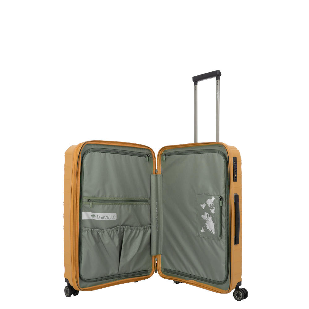 Material und Informationen: Außenmaterial Polypropylen-Polyamid-Compound mit hohem Recyclinganteil Innenfutter Recyceltes PET Schloss TSA-KombinationsschlossRollen 4 Doppelrollen mit 5,5 cm DurchmesserAusziehbare Teleskopstange arretierbares Leichtmetall-GestängeTragegriff ergonomische Oberhand- und Seitenhandgriffe und Bodengriff  Separates Wäschefach JaGepolstertes Laptopfach NeinErweiterbar (Dehnfalte) Nein