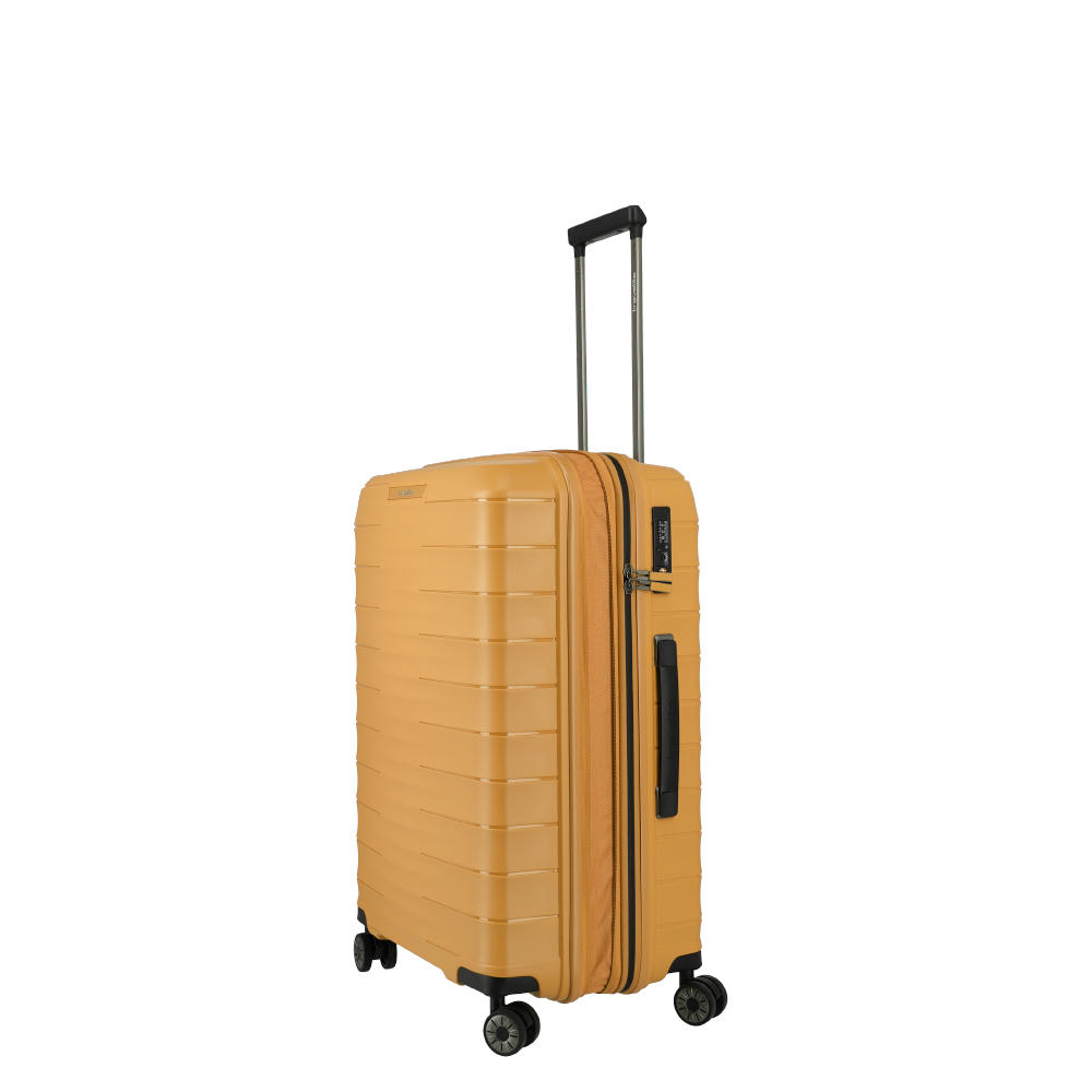 Details und Funktionen: * Kratzresistente Oberfläche  * Recyceltes Polypropylen (mit Ocean Bound Plastic)  * TSA Kombinationsschloss  * Packwand inkl. Reißverschlussfach  * Packgurte  * Vier Doppelrollen * Dehnfalte